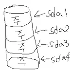 PARTITION & LVM & RAID Partition 파티션이란? 1. 물리적인 하드디스크를 논리적인 여러 영역으로 나눈 상태. => 물리적? 논리적? 이란... 물리적으로 하드디스크를 메인보드 슬롯에 있는 4개의 IDE 라는 곳에 각 2개씩 장착할 수 있다. 첫번째 슬롯 IDE0 에 'IDE 0:0' 과 'IDE 0:1' 하드디스크 장착 가능 두번째 슬롯 IDE1 에 'IDE 1:0' 과 'IDE 1:1' 세번째 슬롯 IDE2 에 'IDE 2:0' 과 'IDE 2:1' 네번째 슬롯 IDE3 에 'IDE 3:0' 과 'IDE 3:1' 이런식으로 총 8개의 물리적(눈에 보이는 물건)하드디스크를 장착 할수 있다. 이런 물리적 장치 종류에는 'IDE'말고 'SCSI'그리고 'SATA' 가 있다. => '..